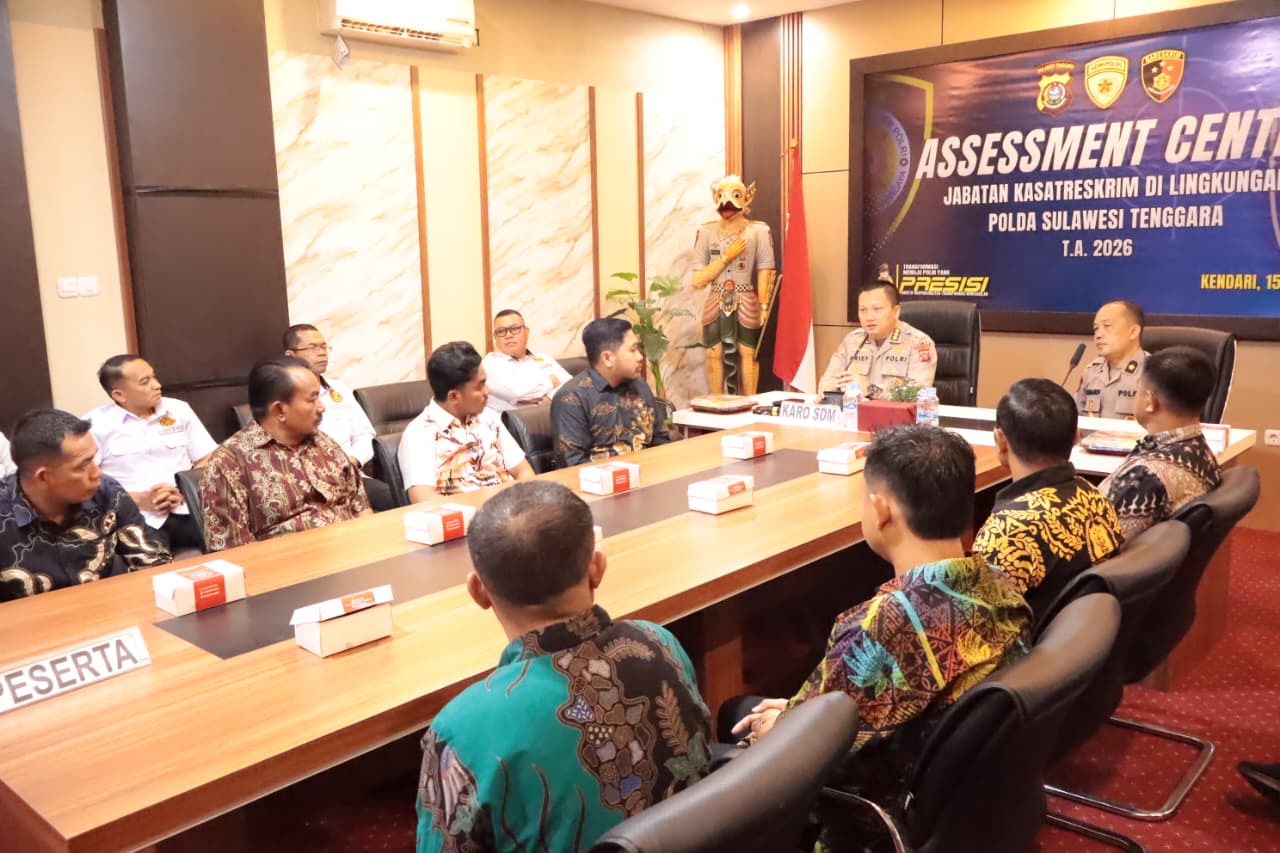 Polda Sultra menggelar Assessment Center untuk seleksi jabatan strategis Kepala Satuan Reserse Kriminal (Kasatreskrim). KENDARI – Kepolisian Daerah Sulawesi Tenggara melalui Biro Sumber Daya Manusia (SDM) terus memperkuat kualitas personel dengan menggelar Assessment Center untuk seleksi jabatan strategis Kepala Satuan Reserse Kriminal (Kasatreskrim).