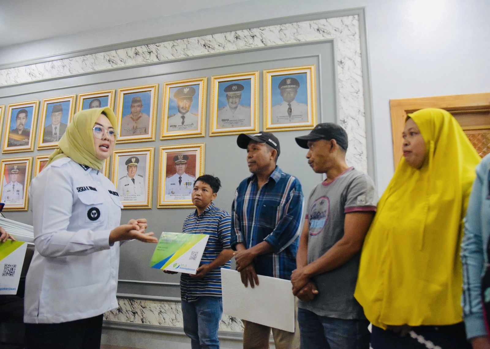 Wali Kota Kendari, Siska Karina Imran menyerahkan secara simbolis bantuan Program Jamsostek kepada perwakilan pekerja rentan di Balai Kota Kendari. RADARKENDARI.ID – Wali Kota Kendari, dr. Hj. Siska Karina Imran, SKM, menyerahkan secara simbolis kartu peserta BPJS Ketenagakerjaan melalui Program Sertakan dari PT Hadji Kalla Toyota kepada 1.500 pekerja informal. Penyerahan ini berlangsung di Ruang Rapat Wali Kota Kendari pada Rabu (14/1/2026).