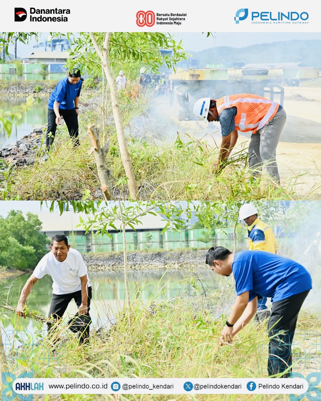General Manager Pelindo Kendari, Herryanto bersama jajaran turun langsung dilapangan melaksanakan pembersihan kawasan pelabuhan.