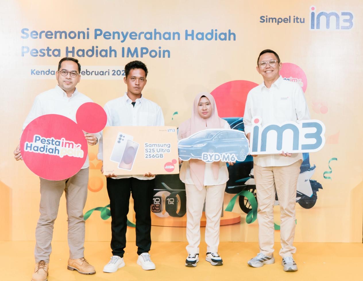 Program IMPoin Pesta Hadiah 2025 yang berlangsung dari 1 September hingga 31 Desember 2025 merupakan program tahunan apresiasi IM3 bagi jutaan pelanggan setia, baik pengguna lama maupun pelanggan baru IM3 dan IM3 Platinum. RADARKENDARI.ID – Menyusul pengumuman pemenang IMPoin Pesta Hadiah 2025 pada Januari lalu, IM3 pada Sabtu (28/2) secara resmi menyerahkan grand prize kepada pelanggan terpilih di Kendari.
