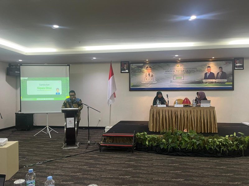 Ketgam : Kepala Distanak Sultra, La Ode Muhammad Rusdin Jaya saat membuka Rakor Penyusunan Angka Tetap (ATAP) Produksi Tanaman Pangan Tahun 2023 yang diselenggarakan di Hotel Claro, Kendari, Kamis, (29/08/2024).