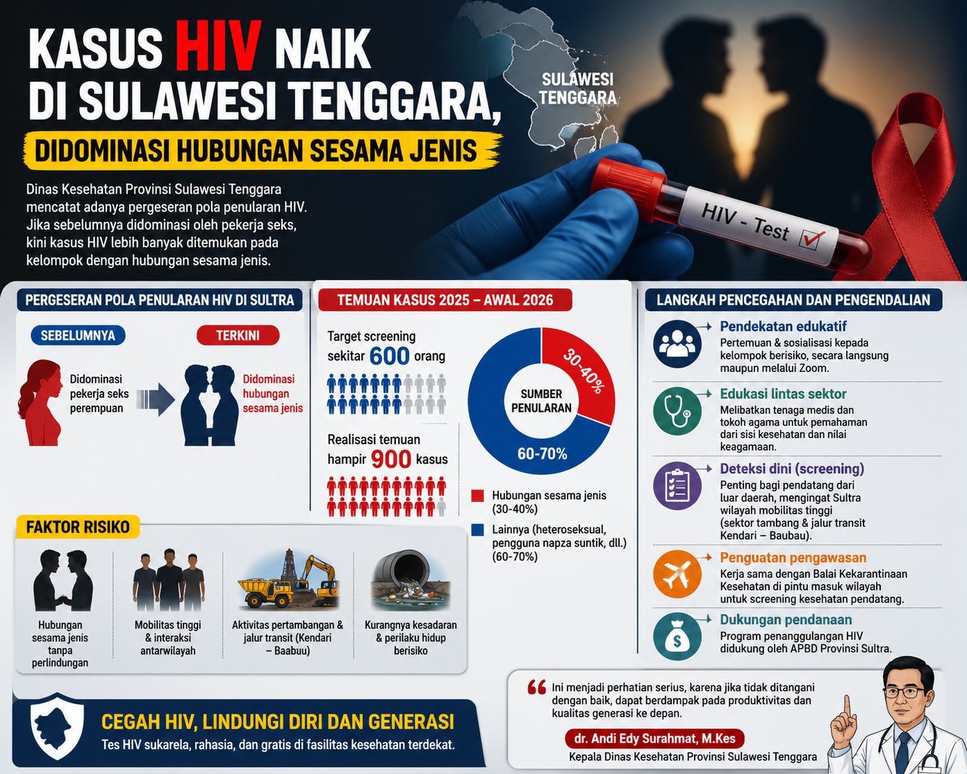 Kepala Dinkes Sultra, dr. Andi Edy Surahmat, M.Kes, mengungkapkan bahwa data terbaru menunjukkan peningkatan signifikan pada kelompok tersebut dibandingkan pola penularan sebelumnya.
