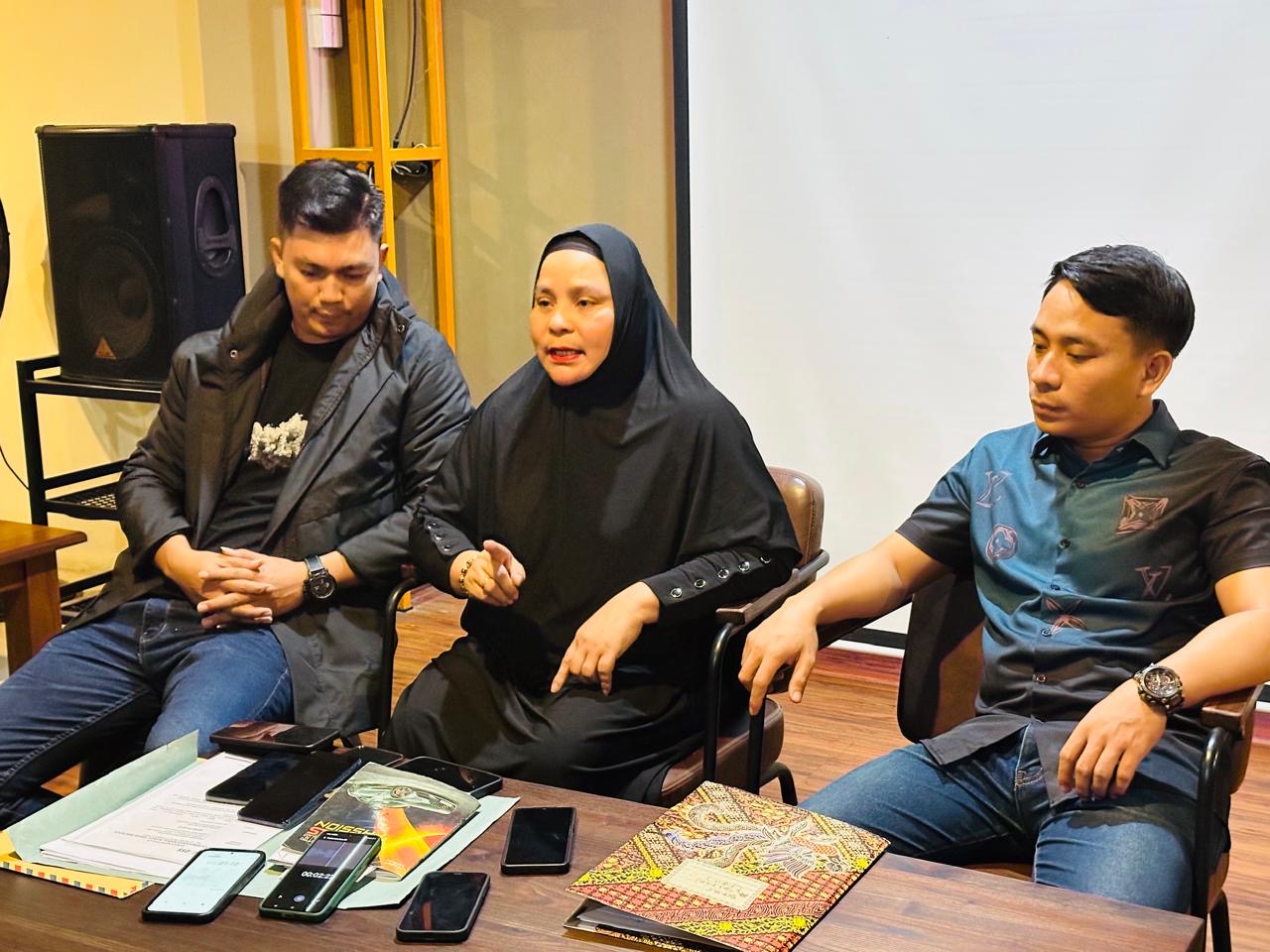 Korban Penipuan Arisan Bodong didampingi kuasa hukumnya menyampaiakan klarifikasi terkait polemik yang dihadapi. RADARKENDARI.ID – Kabar mengenai dugaan pemerasan dan intimidasi yang dilakukan oleh istri seorang anggota Polri di Kendari, Mega (M), terhadap sejumlah ibu rumah tangga (IRT) dibantah keras oleh pihak Mega.