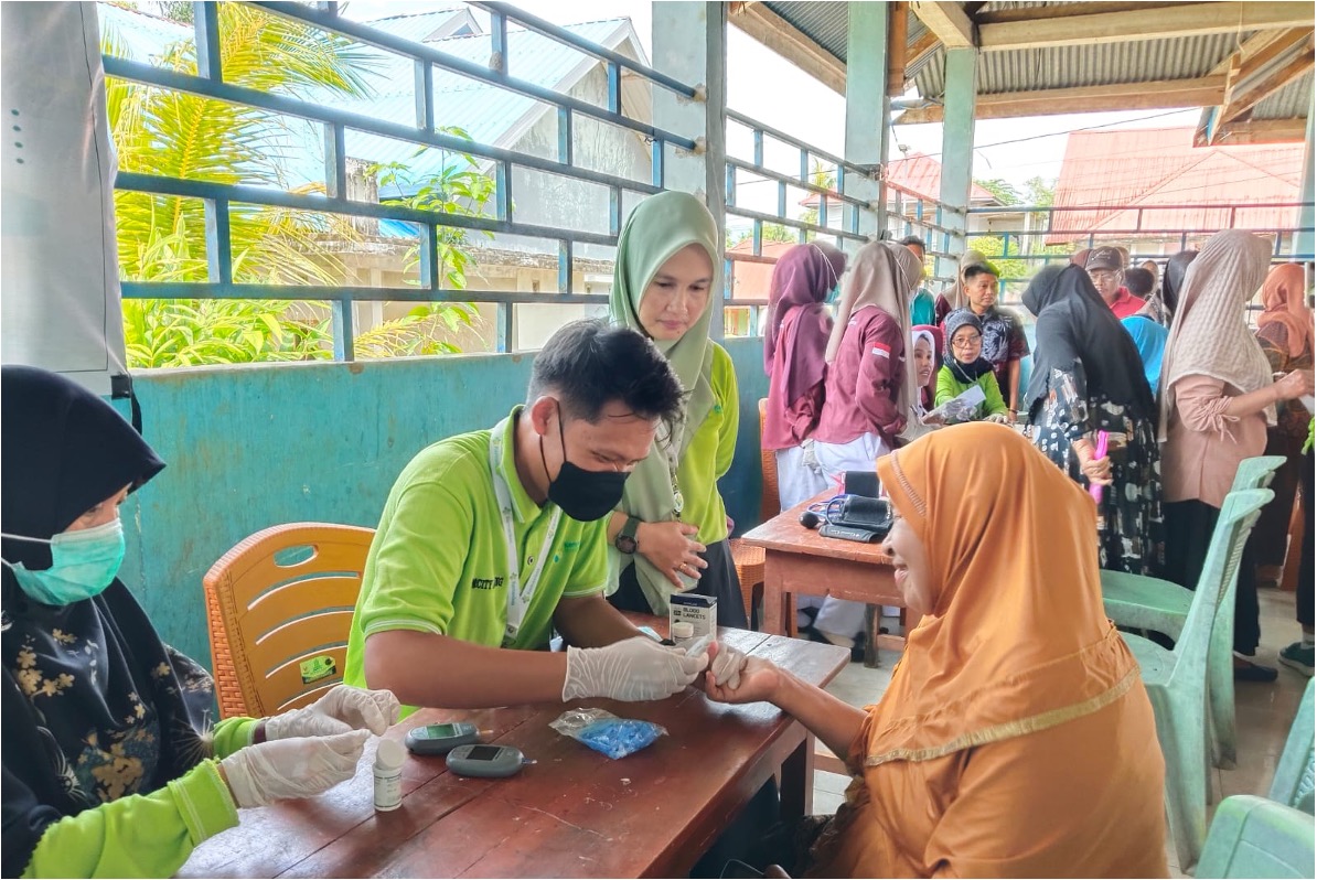 * Skrining Kesehatan Terpadu: Meliputi pemeriksaan tekanan darah, gula darah puasa, kolesterol, dan asam urat. Hasilnya, tim berhasil mendeteksi dini 50% kasus hipertensi dan 30% kasus DM yang kemudian langsung dirujuk ke Puskesmas.