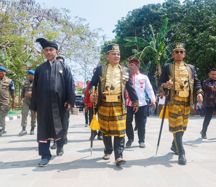 BAUBAU-RADARKENDARI.ID- Penjabat (Pj.) Gubernur Sulawesi Tenggara (Sultra), Andap Budhi Revianto, menghadiri acara pelantikan Paduka Yang Mulia (PYM) Sultan Buton XLI, Laode Muhammad Sjamsul Qamar, dalam prosesi adat Bulilingiana Pau di Baruga Keraton Buton, Baubau, Jumat (18/10/2024).