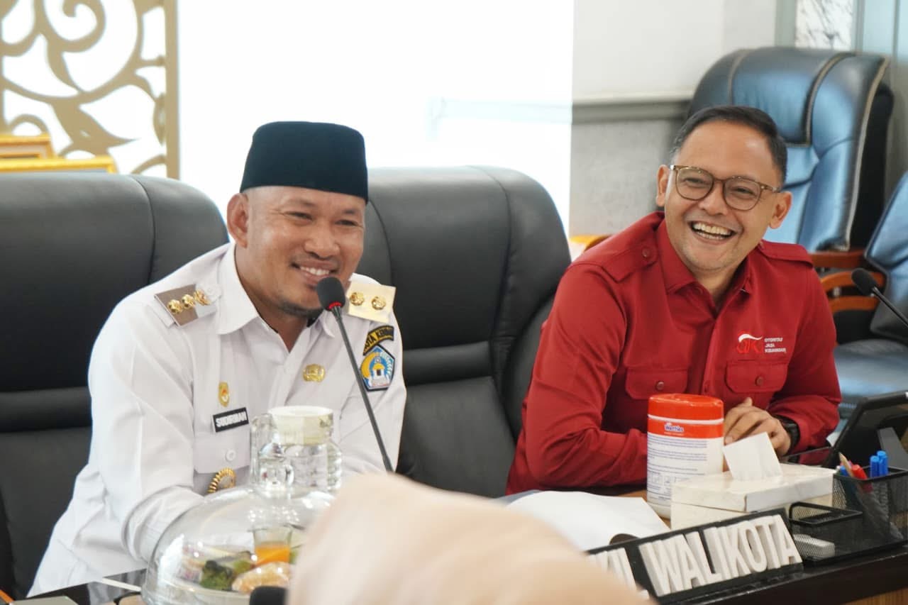 Wakil Wali Kota Kendari, Sudirman didampingi Kepala OJK Sultra, Bismi Maulana Nugraha saat Rakor membahas arah strategis tahun 2026 terutama menyangkut soal akses keuangan daerah. RADARKENDARI.ID – Pemerintah Kota Kendari melalui Tim Percepatan Akses Keuangan Daerah (TPAKD) menggelar rapat koordinasi kerja untuk menyusun arah strategis tahun 2026.