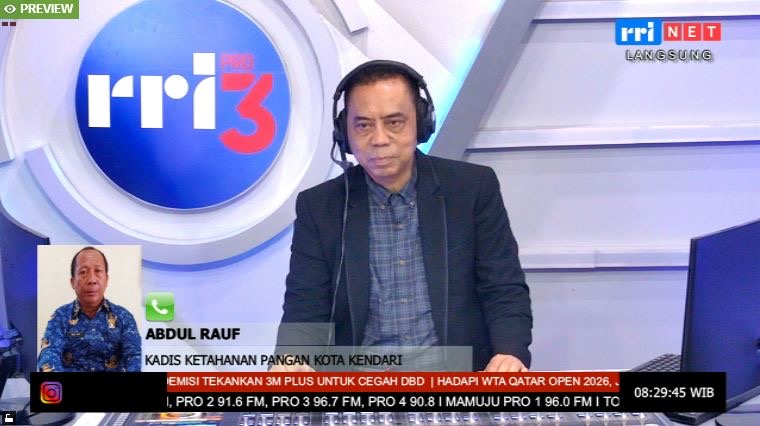 Kepala Dinas Ketahanan Pangan Kota Kendari, Abdul Rauf, saat live wawancara RRI Jakarta mengungkapkan bahwa gerakan pangan murah sejatinya telah dimulai sejak awal Januari 2026. Tujuannya untuk mendekatkan layanan pangan kepada masyarakat. RADARKENDARI.ID – Pemerintah Kota Kendari bergerak cepat melakukan langkah antisipasi guna menjaga stabilitas harga dan pasokan pangan menjelang bulan suci Ramadan dan Idulfitri 2026.
