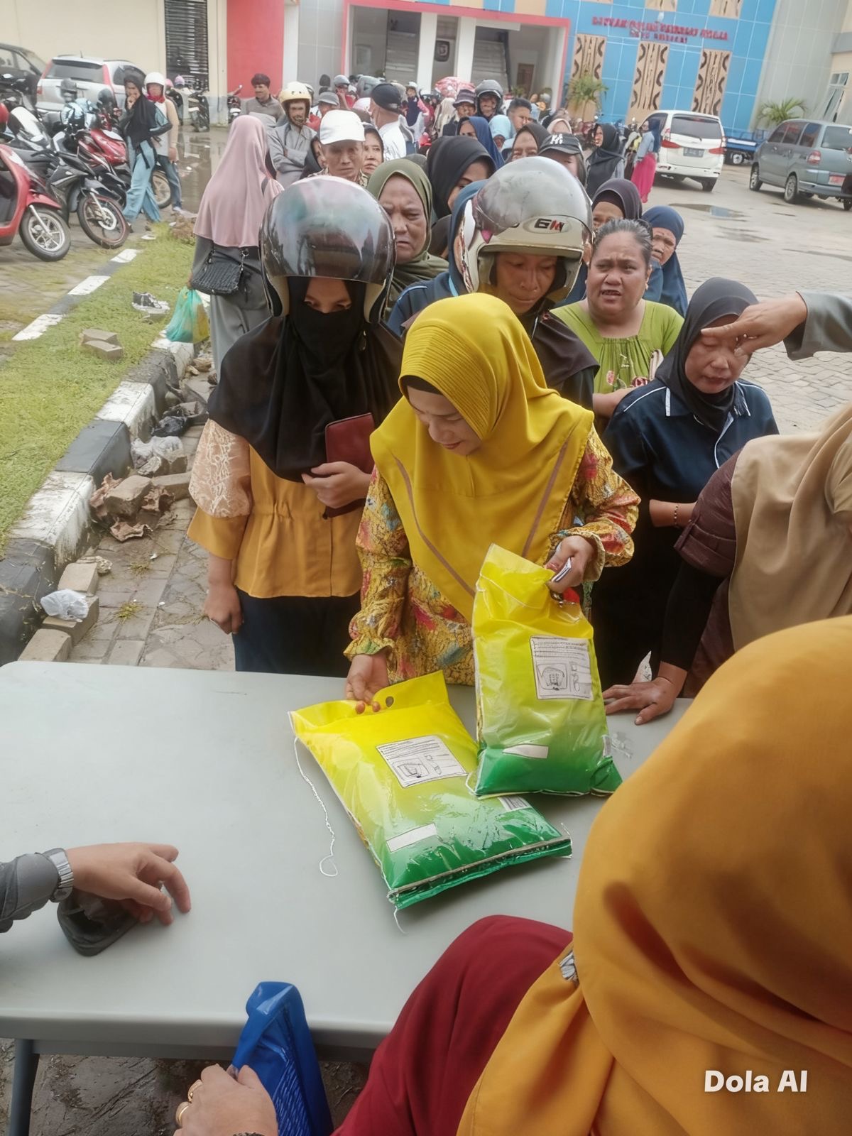 Masyarakat rela antri untuk mendapatkan beras harga terjangkau di Pelataran Balai Kota Kendari.