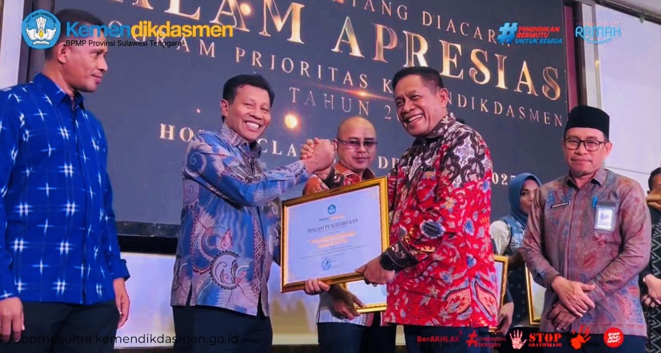 Kegiatan yang berlangsung di Claro Hotel Kendari pada Senin (22/12/2025) ini menjadi bentuk penghargaan bagi pemerintah daerah dan pemangku kepentingan atas komitmen mereka dalam memajukan pendidikan di Bumi Anoa.