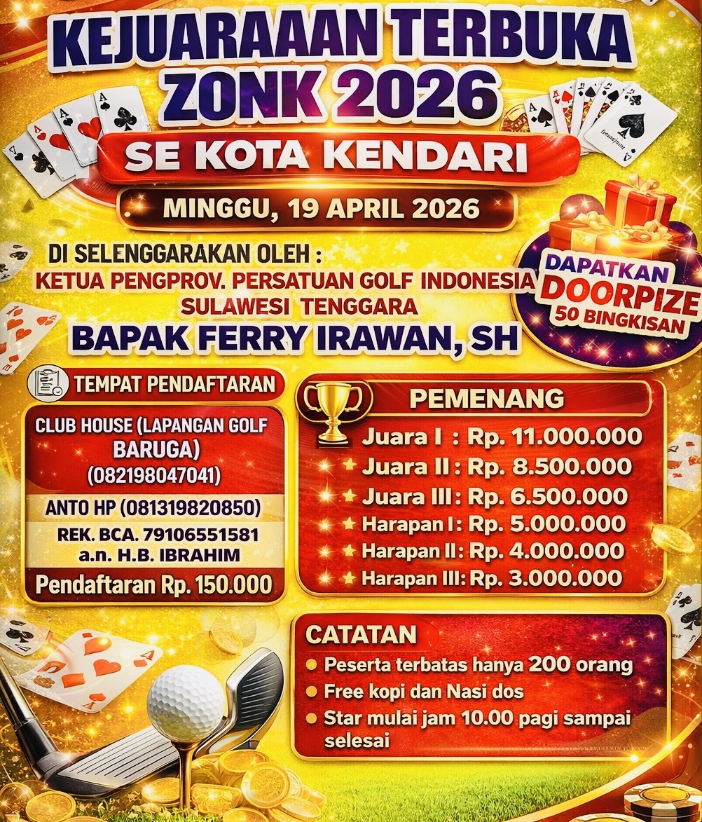 Di bawah komando Ketua Pengprov PGI Sultra, Ferry Irawan, SH, organisasi ini resmi bakal menyelenggarakan “Kejuaraan Terbuka Zonk 2026 Se-Kota Kendari”.