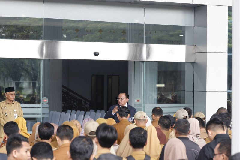 Pj Gubernur Sultra, Andap Budhi Revianto saat pimpin apel pagi di halaman kantor Gubernur Sultra, Senin (07/10/2024)