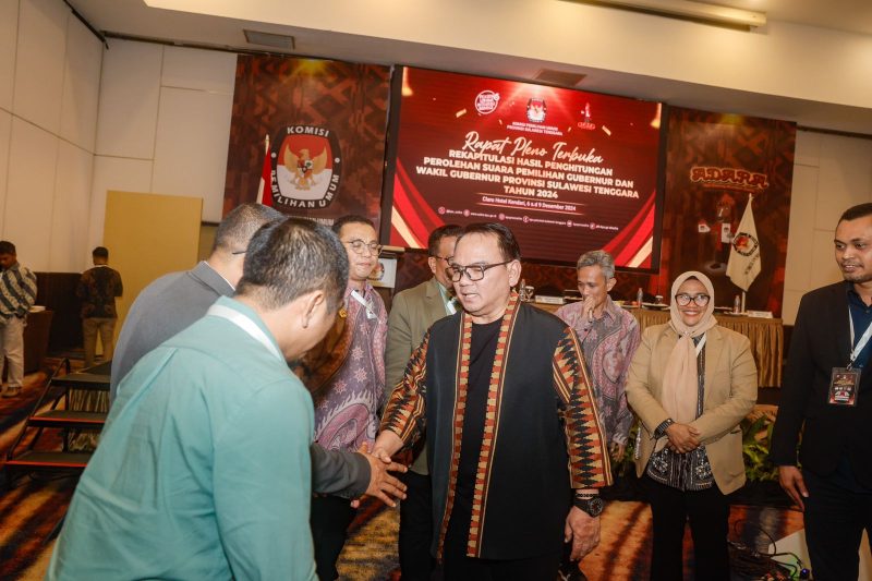 Pj Gubernur Sultra, Andap Budhi Revianto, tiba di lokasi rapat pleno pada pukul 23.00 WITA. Saat kunjungan, proses rekapitulasi sudah memasuki tahap akhir, dengan hanya menyisakan pembahasan hasil perolehan suara dari satu kabupaten yang belum disahkan.