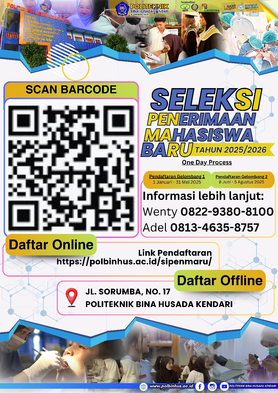 RADARKENDARI.ID, Kendari, Sulawesi Tenggara – Politeknik Bina Husada Kendari membuka pendaftaran mahasiswa baru untuk tahun akademik 2025/2026.