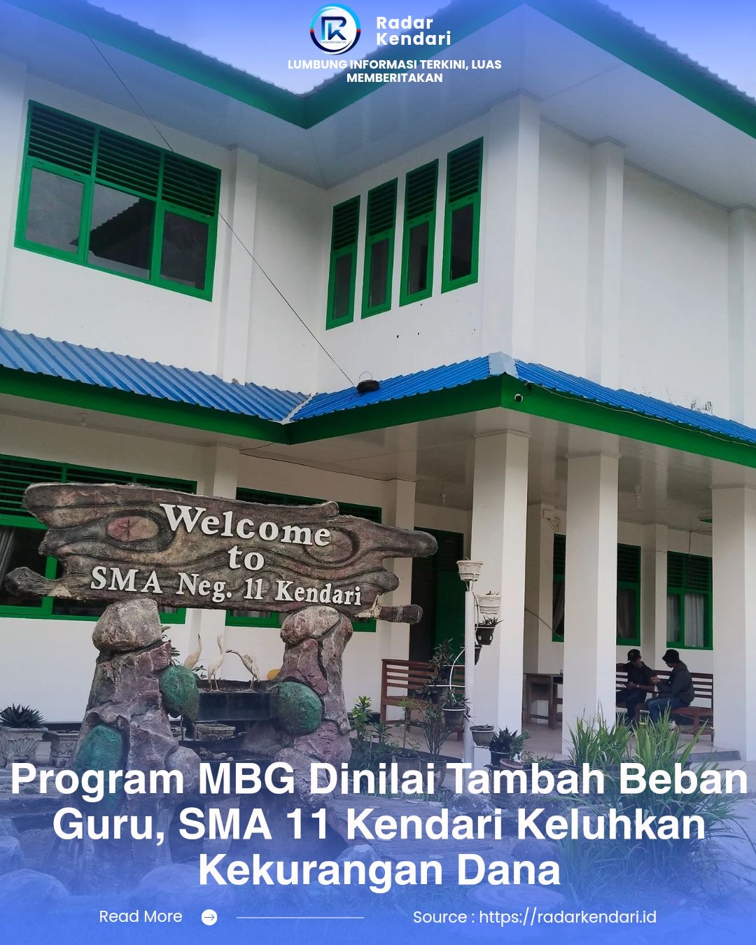 SMAN 11 Kendari menyoroti dampak pelaksanaan program Makanan Bergizi Gratis (MBG) yang merupakan program pemerintah pusat di era Presiden Prabowo Subianto dan Wakil Presiden Gibran Rakabuming Raka. KENDARI – Wakil Kepala Sekolah SMA Negeri 11 Kendari, Laode Sidi, menyoroti dampak pelaksanaan program Makanan Bergizi Gratis (MBG) yang merupakan program pemerintah pusat di era Presiden Prabowo Subianto dan Wakil Presiden Gibran Rakabuming Raka.
