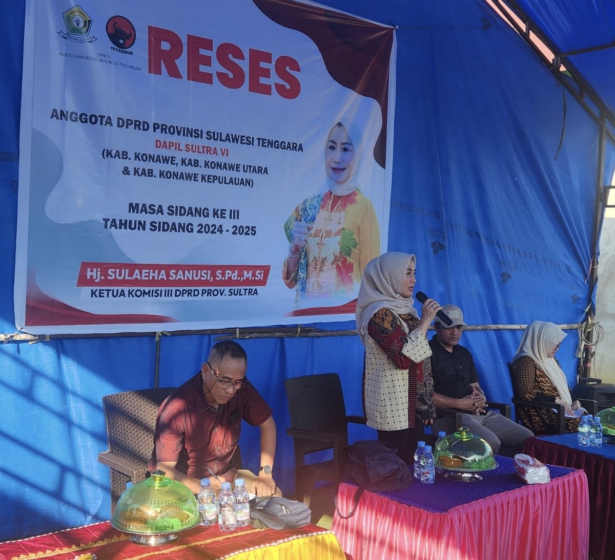 RADARKENDARI.ID – Konawe Utara, Sulawesi Tenggara – Anggota Dewan Perwakilan Rakyat Daerah (DPRD) Provinsi Sulawesi Tenggara (Sultra) Hj. Suleha Sanusi melaksanakan kegiatan reses Masa Sidang III Tahun 2024-2025 di daerah pemilihannya (Dapil) Sultra IV, yang meliputi Kabupaten Konawe, Konawe Utara (Konut), dan Konawe Kepulauan, Kamis (02/10/2025).