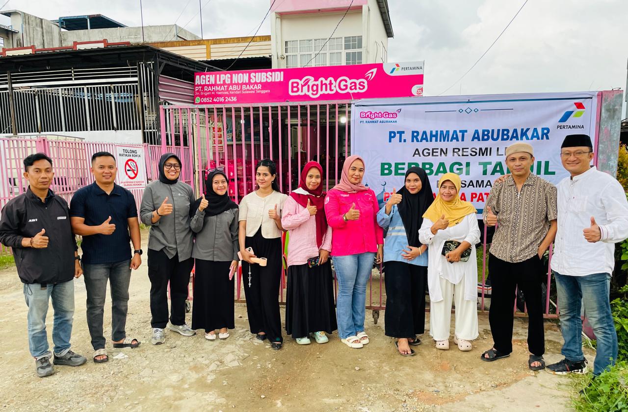 Owner PT Rahmat Abubakar, Hj. Wa Ode Alina bersama jajaran foto bersama perwakilan Pertamina Patra Niaga Sulawesi.