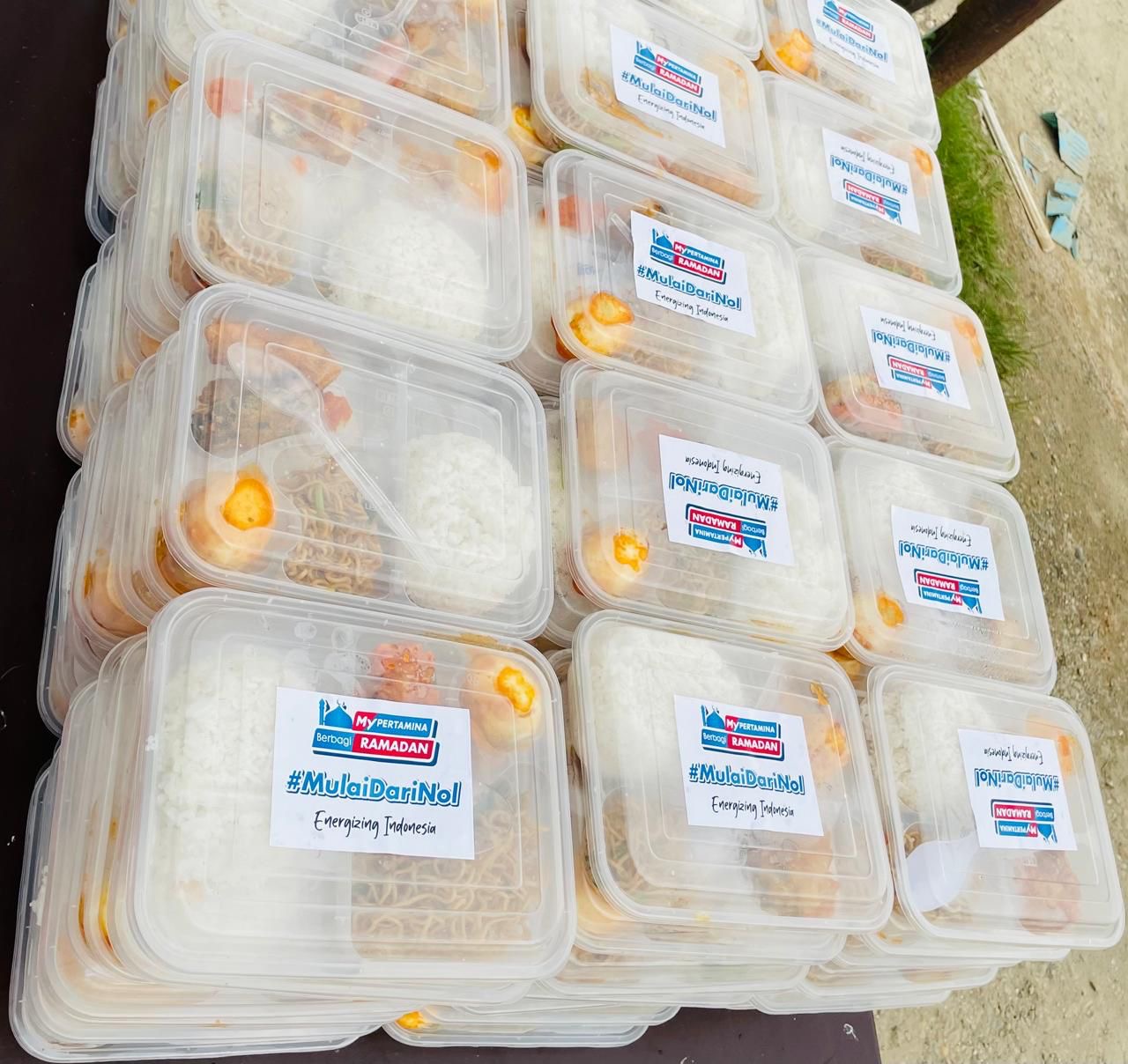 Paket Takjil berupa makanan yang dibagikan secara gratis kepada masyarakat oleh PT Rahmat Abubakar dan Pertamina Patra Niaga Sulawesi.