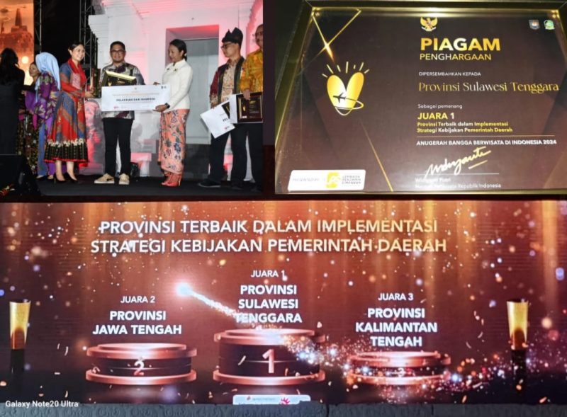 Penghargaan ini diserahkan oleh Wakil Menteri Pariwisata, Ni Luh Puspa, kepada Kepala Dinas Pariwisata Sultra, Belli Harli Tombili, dalam acara puncak ABBWI 2024 yang digelar di Gesibu Blambangan, Banyuwangi, pada Jumat (13/12/2024). Sultra mengungguli Provinsi Jawa Tengah dan Kalimantan Tengah yang masing-masing menempati posisi kedua dan ketiga.
