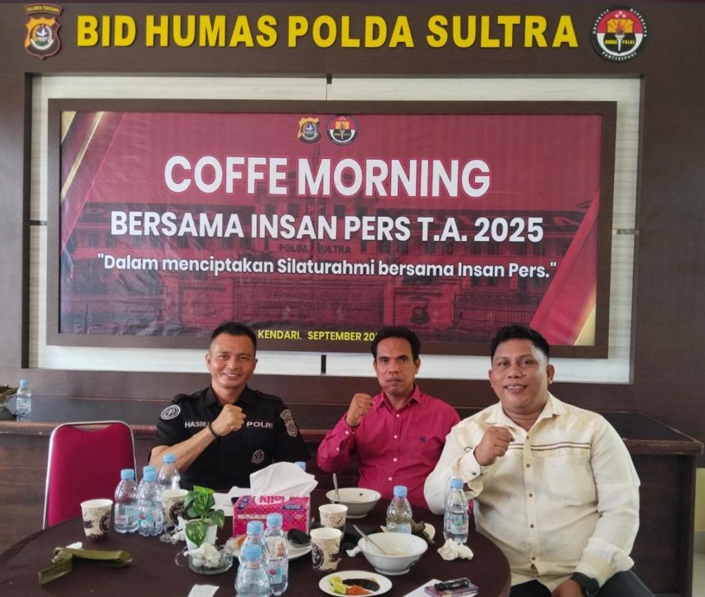 Coffee Morning yang rutin digelar Polda Sultra ini mengusung tema “Dalam Menciptakan Silaturahmi Bersama Insan Pers” dan dihadiri oleh berbagai perwakilan media cetak, online, dan televisi serta Ketua Asosiasi Perusahaan Media dan Ketua Profesi Wartawan di Sultra.